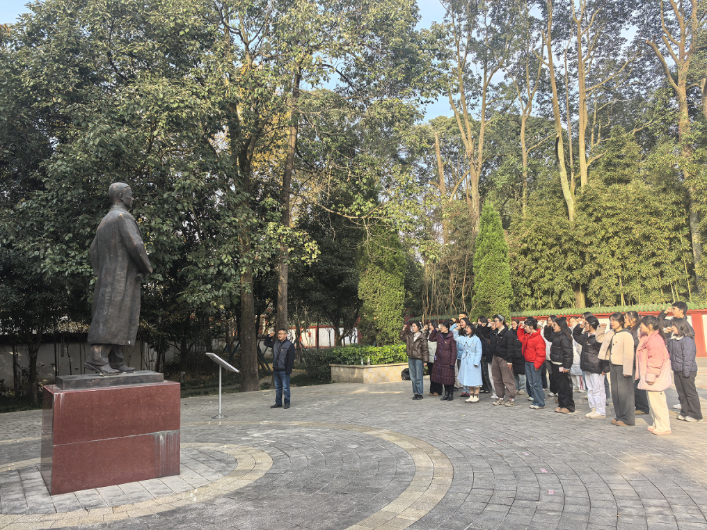 2025年12月4日,地理与环境学院学生党支部组织全体学生党员前往江油市武都镇王右木纪念园,开展以“追寻革命足迹 筑牢信仰之基”为主题的党日活动。通过参观纪念馆、重温入党誓词等环节,引导广大青年党员在红色历史中汲取力量,实现红色精神与青年成长的同频共振。
