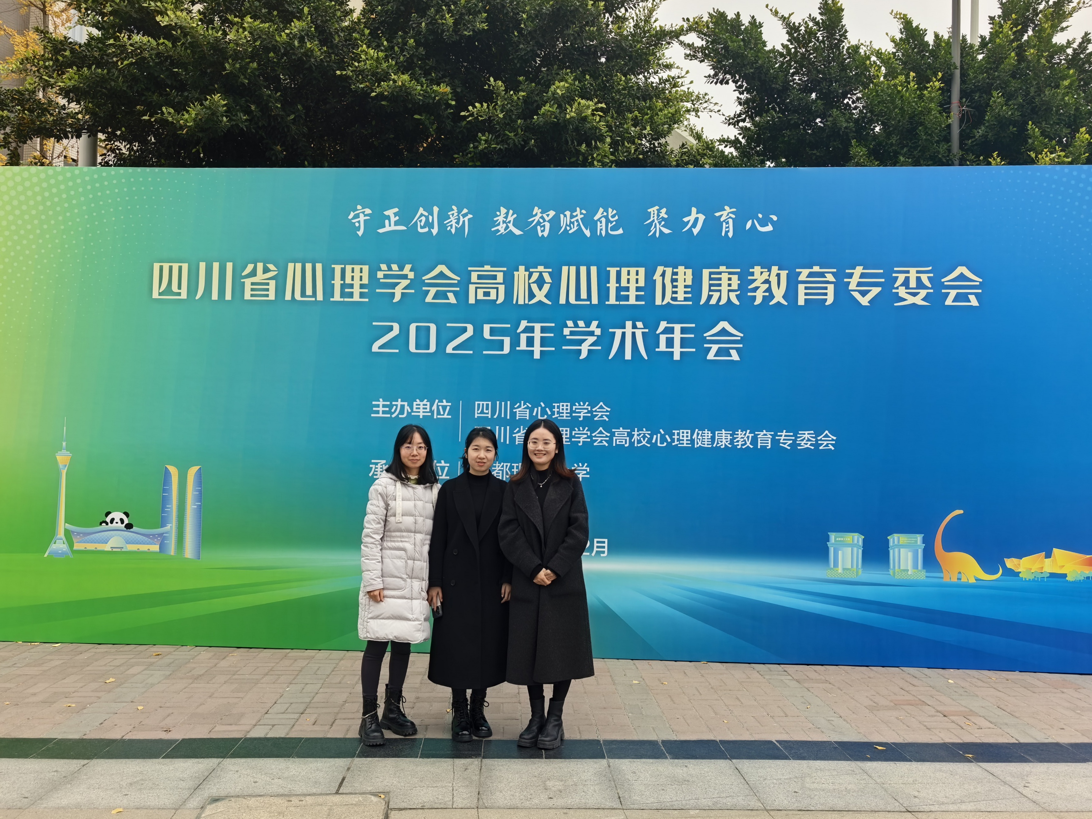 2025年12月5日-6日,四川省心理学会高校心理健康教育专委会2025年学术年会在成都召开。我校地理与环境学院心理辅导站专职辅导员黄梦兰受专委会邀请在年会作题为《大数据赋能精准化心理育人:算法溯源到协同定位体系构建》专题学术报告,受到与会专家的高度评价,被认为具有扎实的实践基础和推广价值。