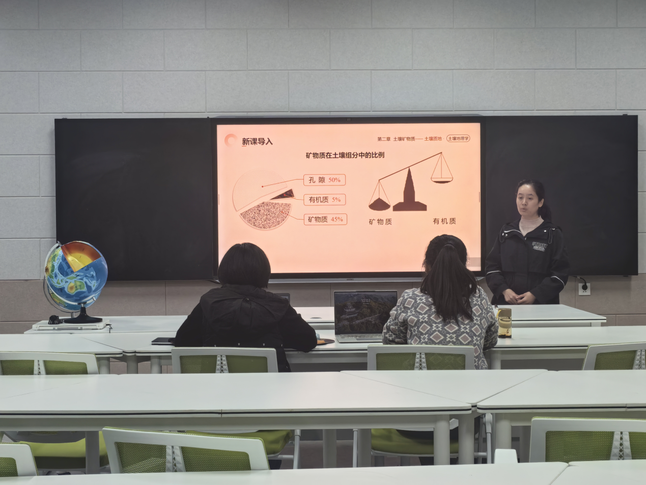 此次青年教师教学竞赛决赛设置了教学设计、现场教学、教学反思三个环节,全面考察教师的教学理念、专业素养和教学创新能力。竞赛自启动以来,我院高度重视,积极响应,并组建了由教学督导及骨干教师组成的专项指导团队,建立青教赛指导群,通过线上线下相结合的研讨方式,为王雪梅老师的备赛工作提供全方位支持。从教学设计、课件优化、课堂呈现到教学反思等全环节精准发力,指导团队与王雪梅老师展开了深入研讨,团队协作的力量得到了充分彰显。在决赛现场,王雪梅老师以抽取的《隐形吸附高手—土壤胶体》为题,通过情景导入、小组探究、案例分析等多样化教学方法,将抽象的理论知识与实际应用相结合,充分调动了学生的参与积极性,获得了评委的认可与好评。